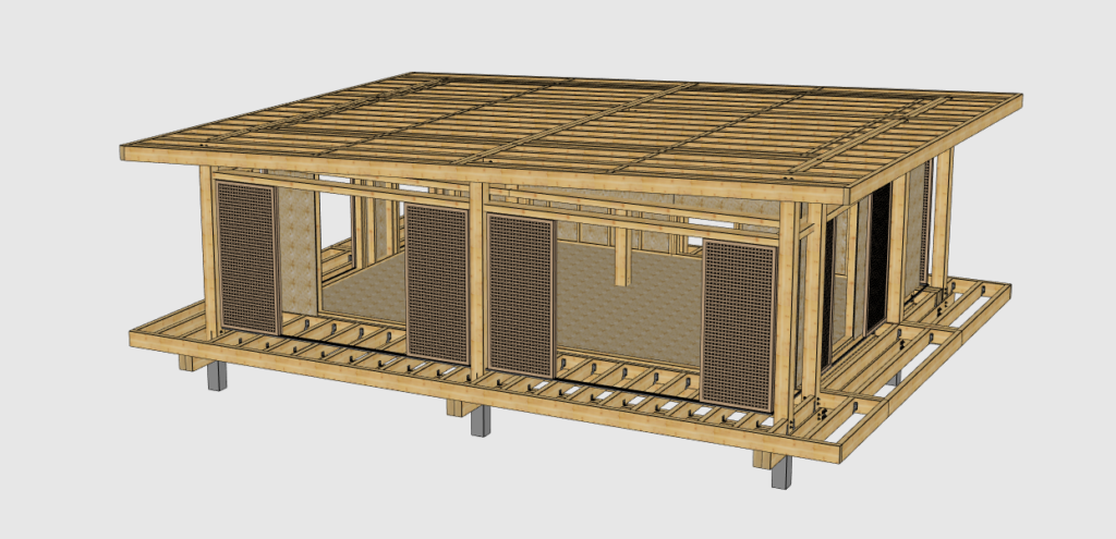 Typologie : Structure poteau poutre en bois massifToiture végétalisée
