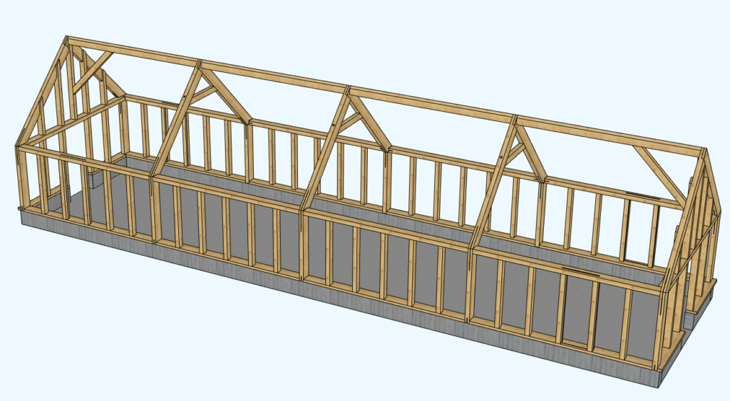 Typologie : Structure poteaux-poutres bois avec portique encastré