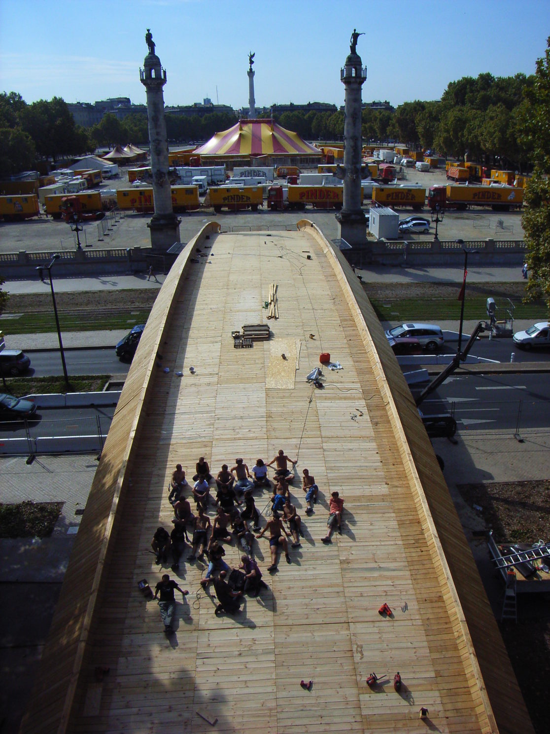 Conception et réalisation d'une passerelle éphémère en collaboration avec l'artiste Tadashi KAWAMATA dans le cadre d'Evento 2009 à Bordeaux (33)