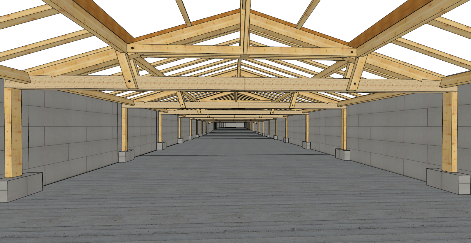 Typologie : Charpente en lamellé-collé et couverture en tuiles canal