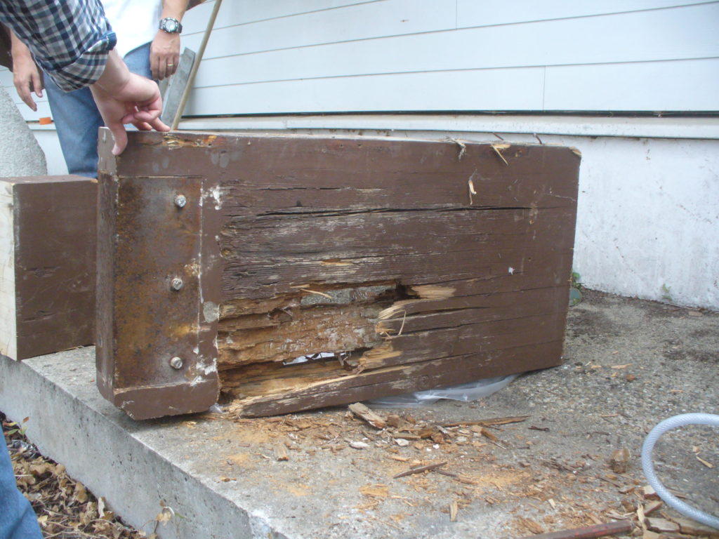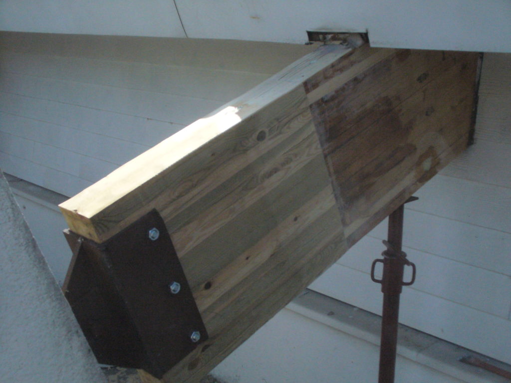 Typologie : Réparation des abouts de portique par la mise en oeuvre de prothèses bois connectées par fibres composites selon procédés R3S
