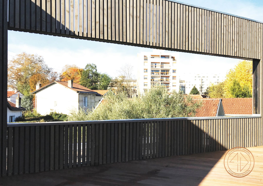 Typologie :Surélévation en ossature boisBrise vue en structure métallique et parement bois